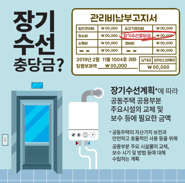 장기수선충당금이란 관리비 항목 중 하나로 승관기, 배관, 도색 등