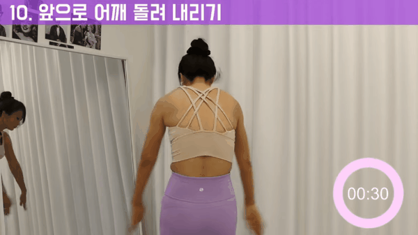 10. 어깨를 뒤에서 앞으로 원을 그리면서 돌려줍니다.