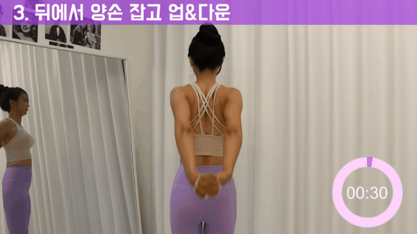 3. 양손을 뒤에서 마주잡고 팔을 위아래로 업&다운 시켜줍니다.