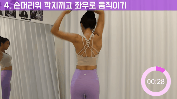 4. 손 머리 위에서 깍지를 끼고 팔을 좌우로 움직여줍니다.