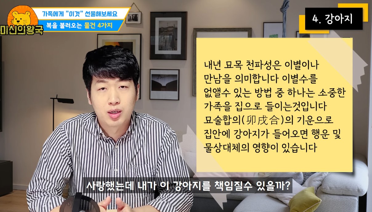 세 번째 운이 올라가는 선물은 애완동물입니다.