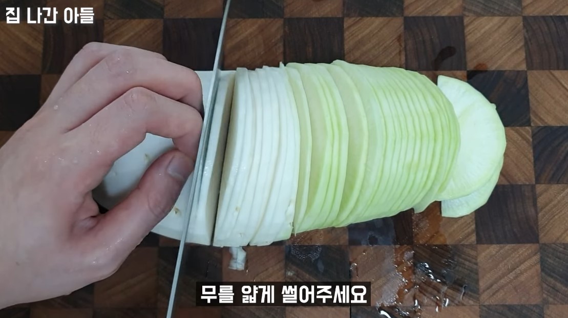 2. 무를 최대한 얇게 썰어줍니다.