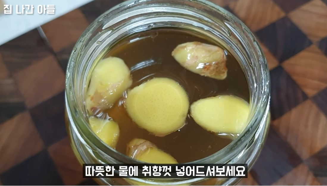이렇게 하면 무에서 나온 즙, 꿀, 생강으로 감기에 탁월한 청이 완성됩니다.