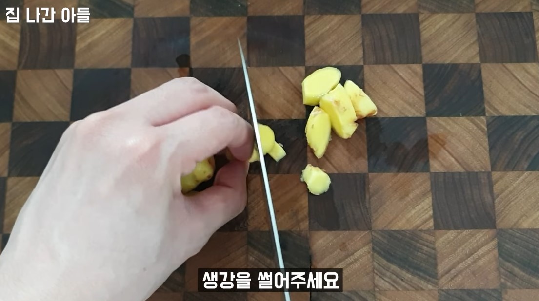 6. 물이 끓는 동안 생강을 적당한 크기로 잘라줍니다.