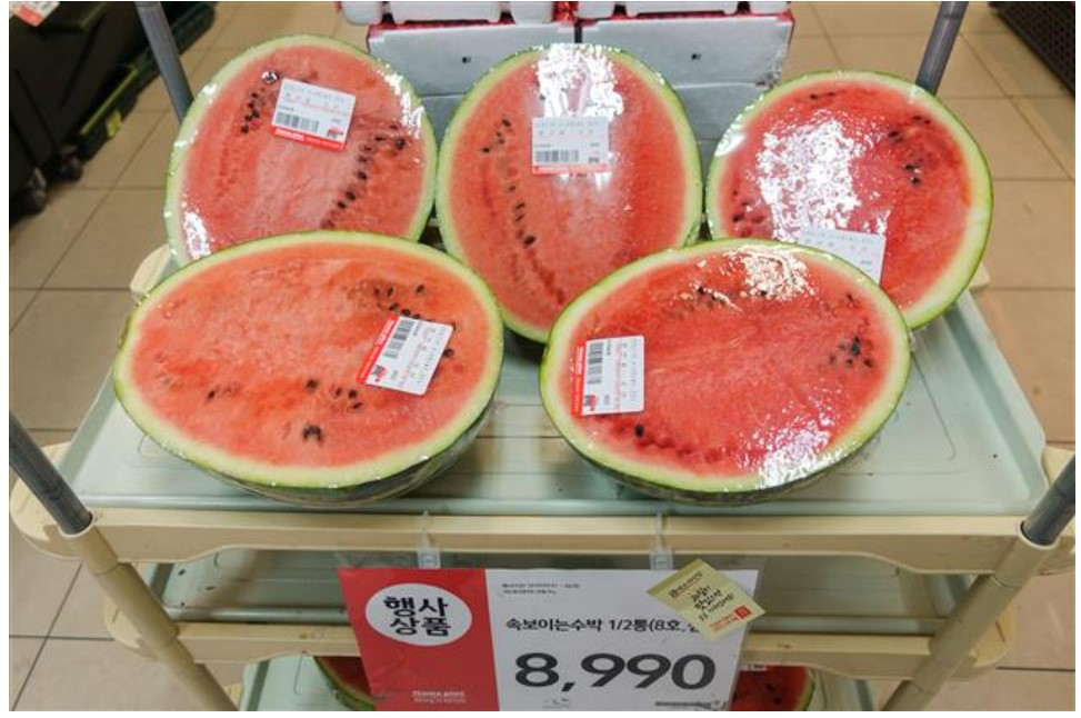 사면 안 되는 수박은 반절 컷팅 후 랩핑된 수박입니다.