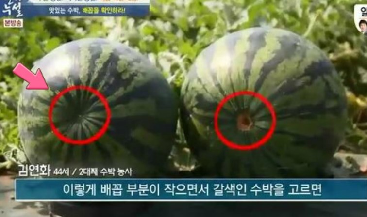 2. 수박 배꼽이 갈색이면서 작은 것을 골라라