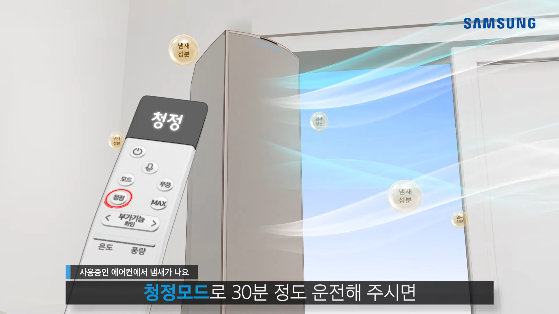 송풍으로 30분 정도 운전해 주시면 냄새를 더욱 빠르게 제거할 수 있습니다.