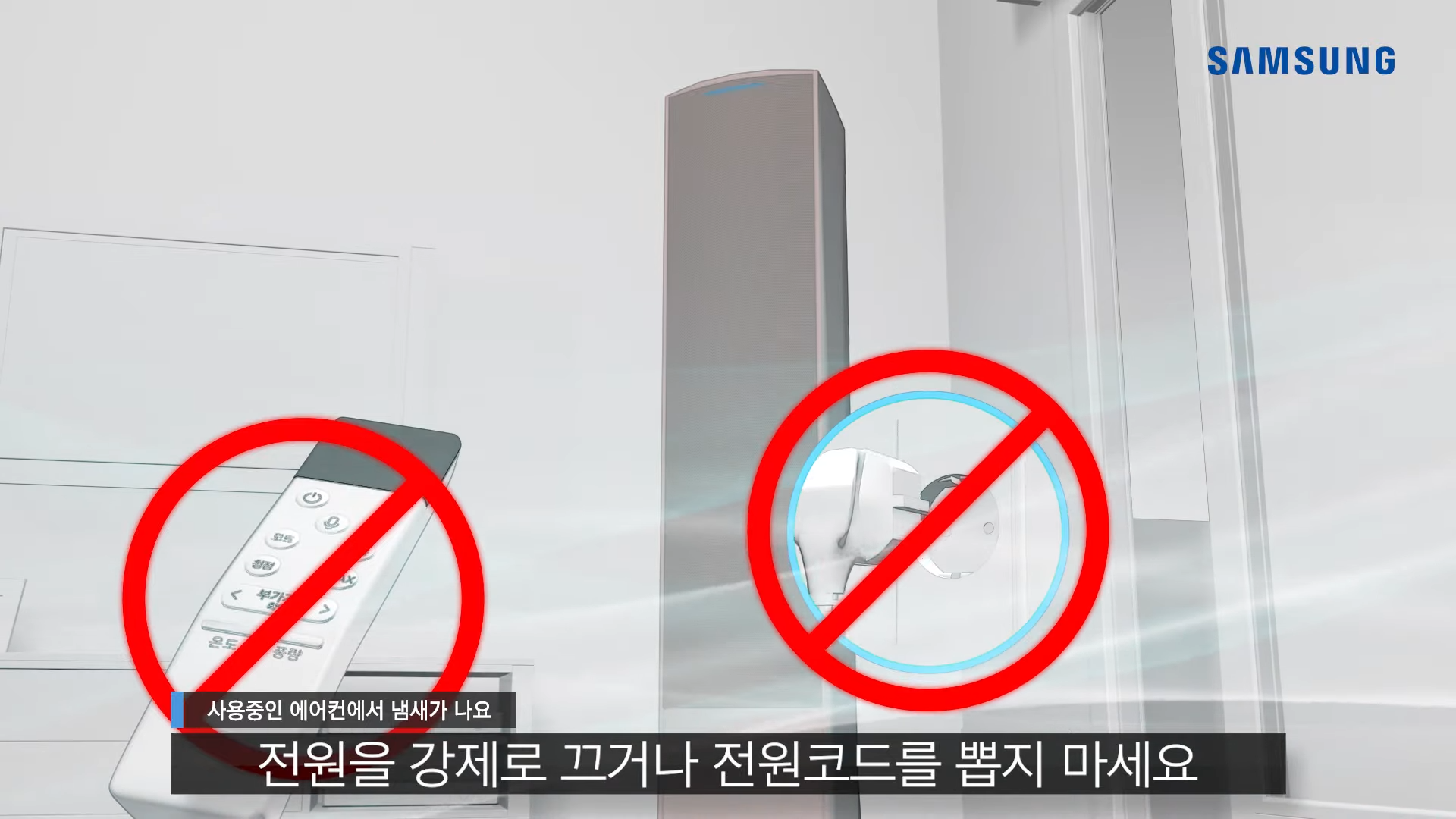 4. 요즘 나오는 에어컨들은 늘 깨끗하고 상쾌한 에어컨 바람을 유지하기 위해 에어컨 종료 후 자동청소 건조 기능이 작동되기 때문에 전원을 강제로 끄거나 전원 코드를 뽑지 마세요.