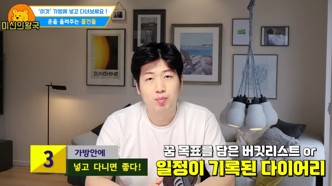 세 번째 가방 안에 넣고 다니면 좋은 물건은 꿈이 적힌 다이어리입니다.