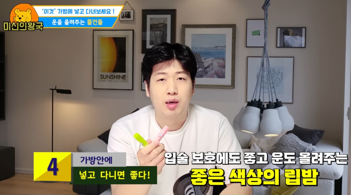 네 번째 가방 안에 넣고 다니면 좋은 물건은 좋은 색상의 립밤입니다.