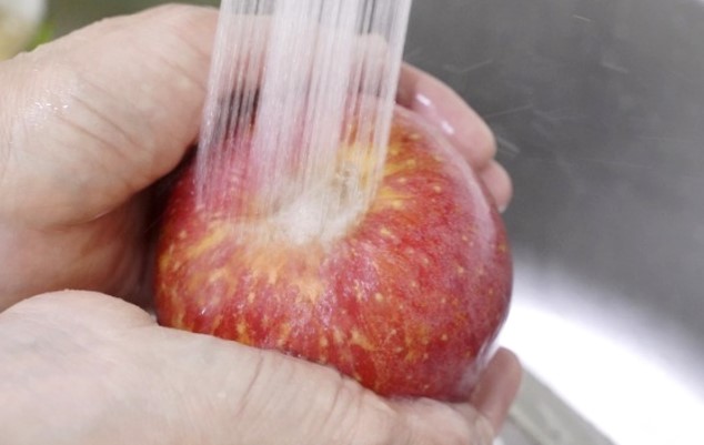 사과는 세척할 때 흐르는 물에 씻어내거나 헝겁 등으로 닦아낸 뒤 먹어도 좋습니다.