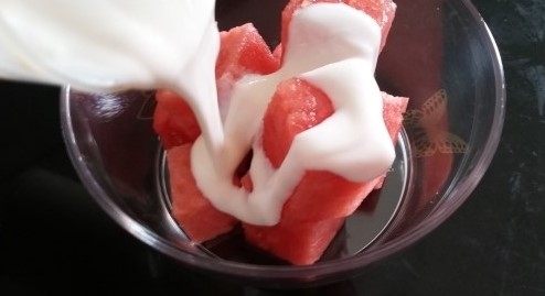 요플레에는 적당량의 지방이 들어 있어서 수박과 궁합이 좋습니다.