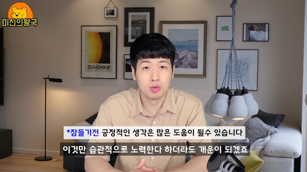 잠들기 전에 긍정적인 생각을 습관적으로 하면 개운이 된다고 합니다.
