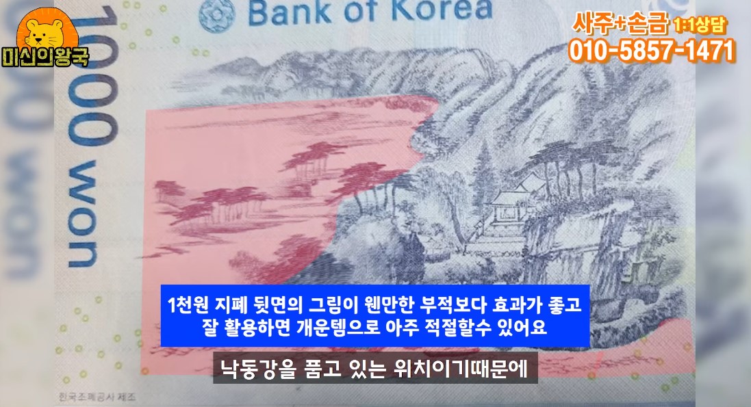 천원 지폐의 뒷면 그림은 웬만한 부적보다 효과가 좋고,