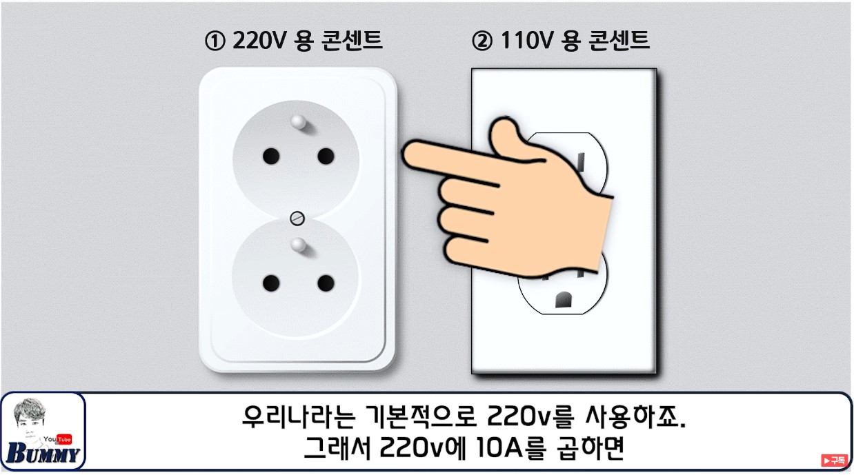 그래서 220v에 10A를 곱하면 왼쪽 멀티탭으로