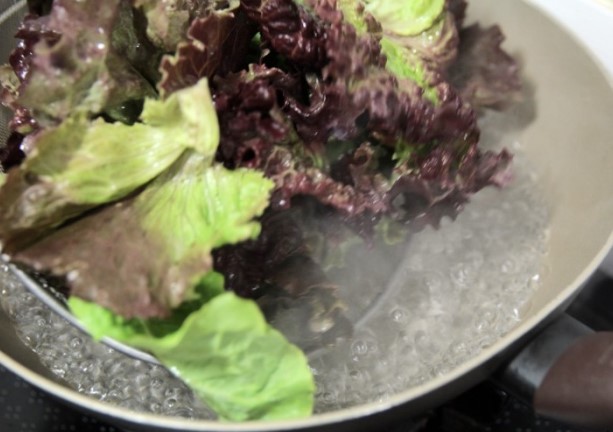 재료가 준비되었다면 상추는 끓는 물에 넣었다 바로 뺀다는 느낌으로 살짝만 데칩니다.