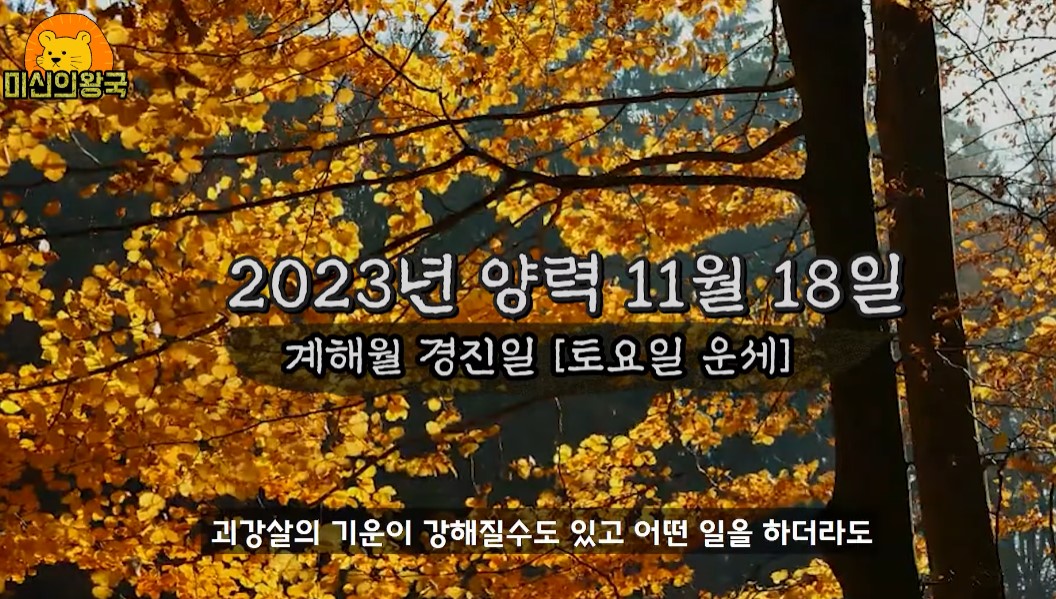 2023년 양력 11월 18일 계해월 경진일 토요일 운세입니다.