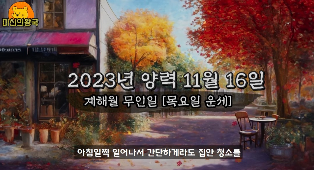 2023년 양력 11월 16일 계해월 무인일 목요일 운세입니다.