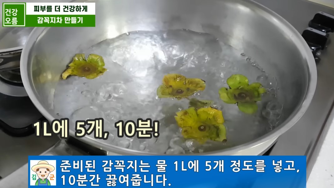3.감꼭지는 물 1L에 5개 정도 넣고 10분간 끓여줍니다.