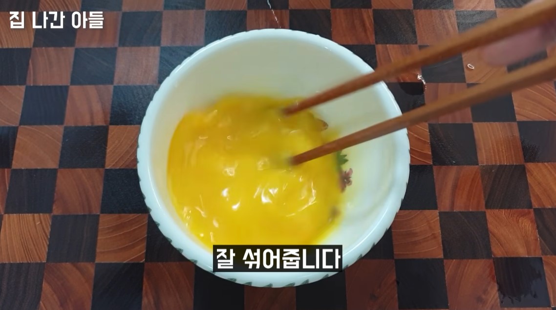 4. 계란 두개도 잘 풀어 섞어줍니다.