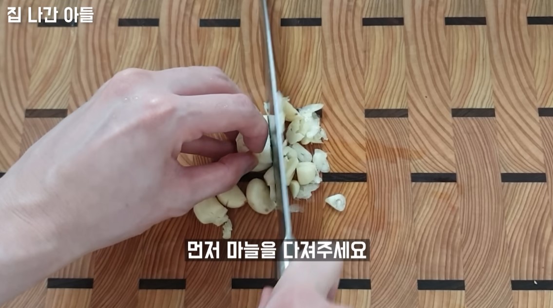 1. 마늘은 한줌 정도 잘게 다져줍니다.