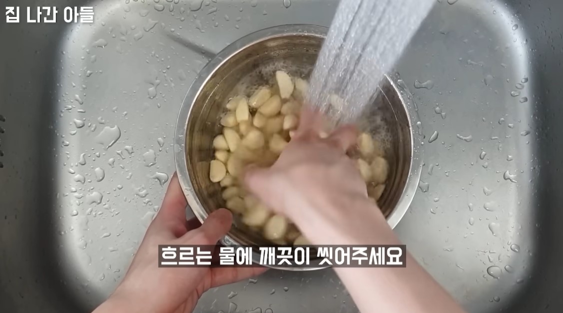 2. 손질한 마늘을 흐르는 물에 깨끗이 씻어 줍니다.