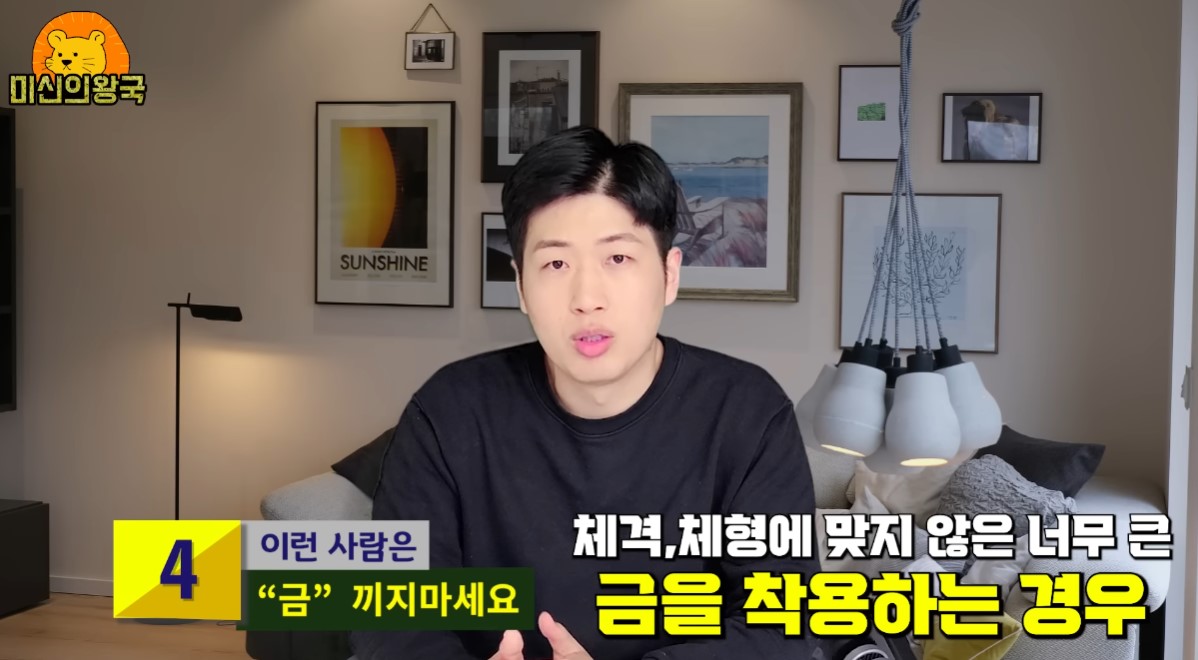 네 번째는 본인의 체형, 체격 에 맞지 않는 너무 과한 금을 착용하는 경우입니다.